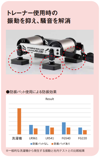 サイクルトレーナーの脚部分に敷いて振動を和らげることができます。