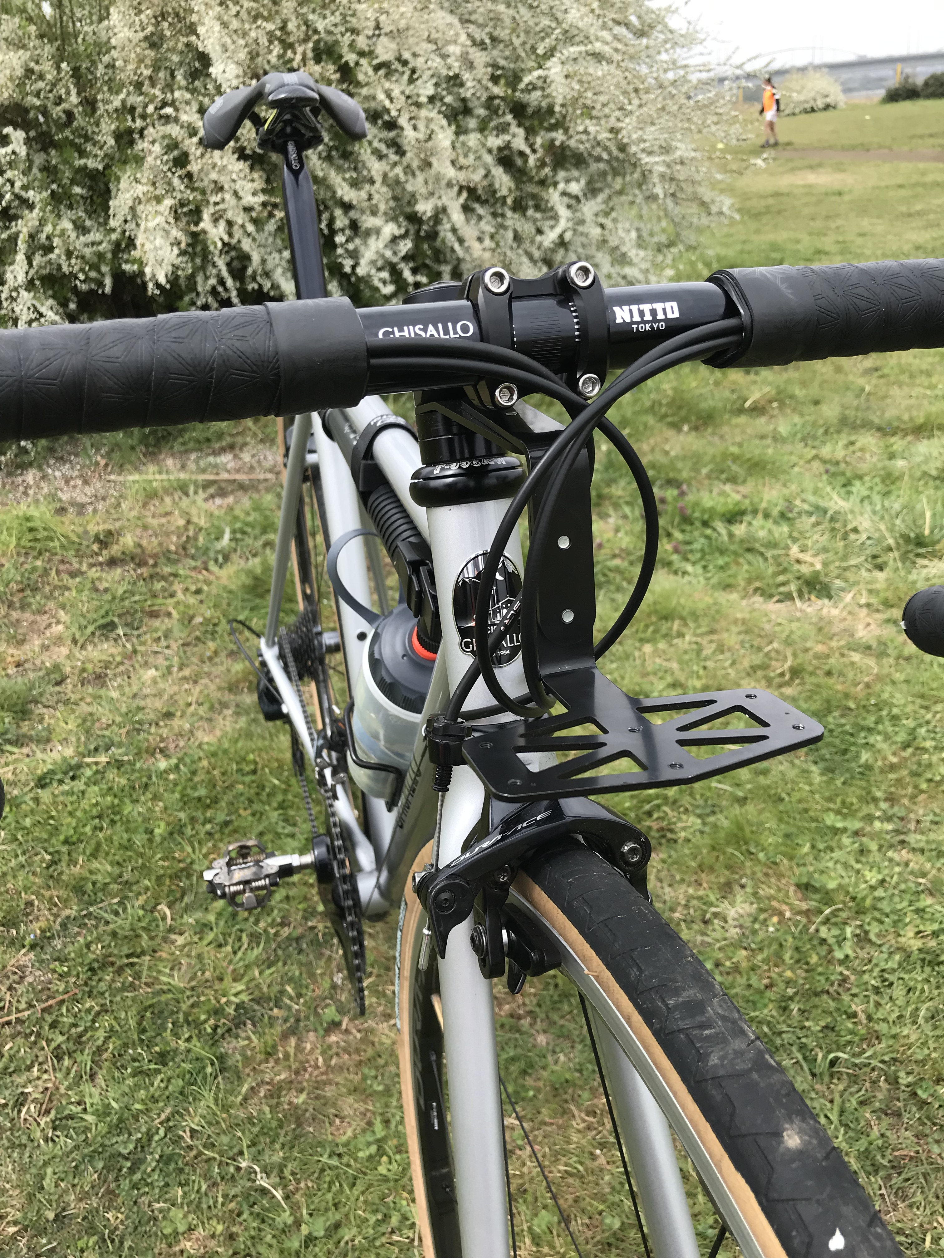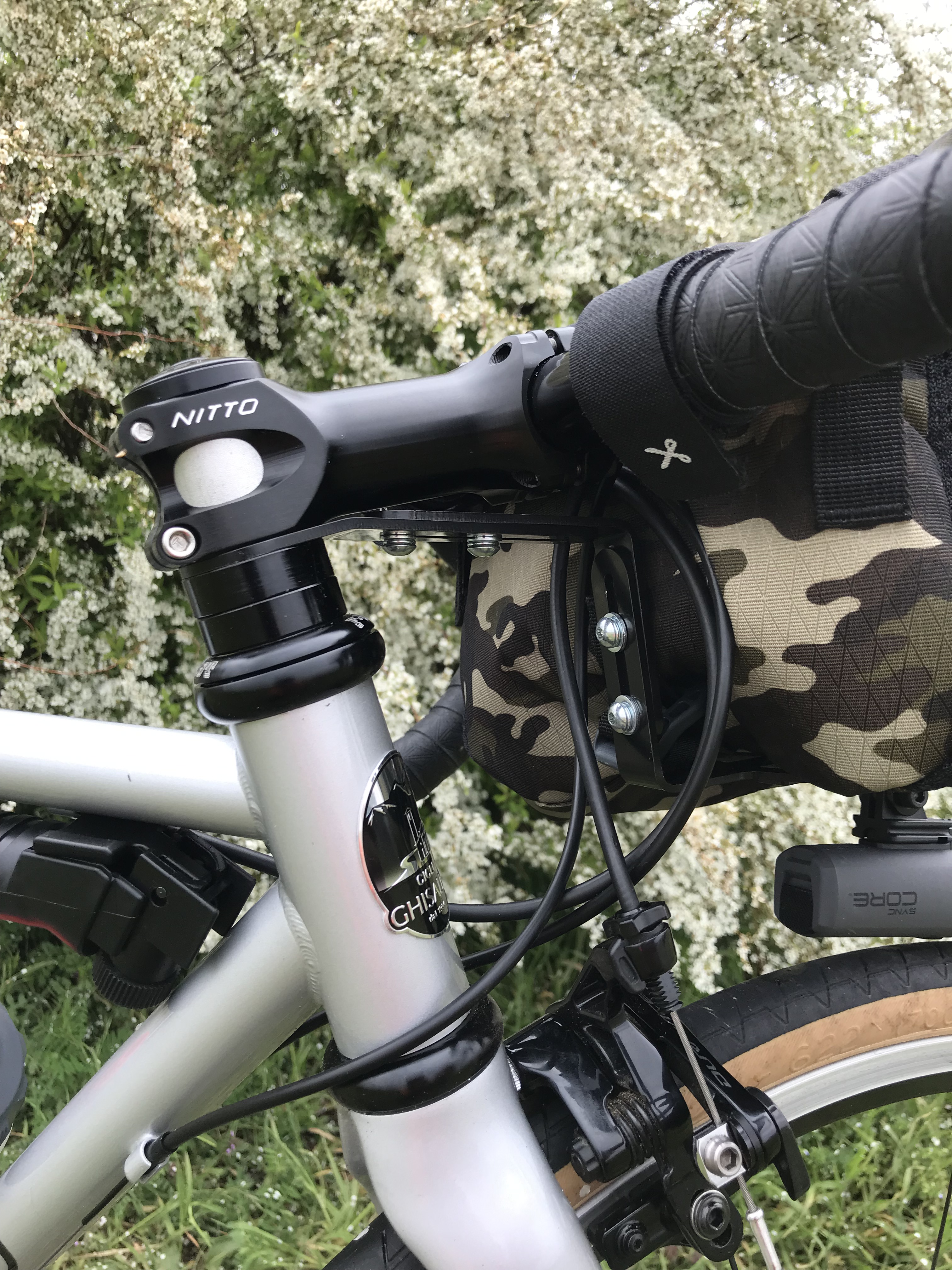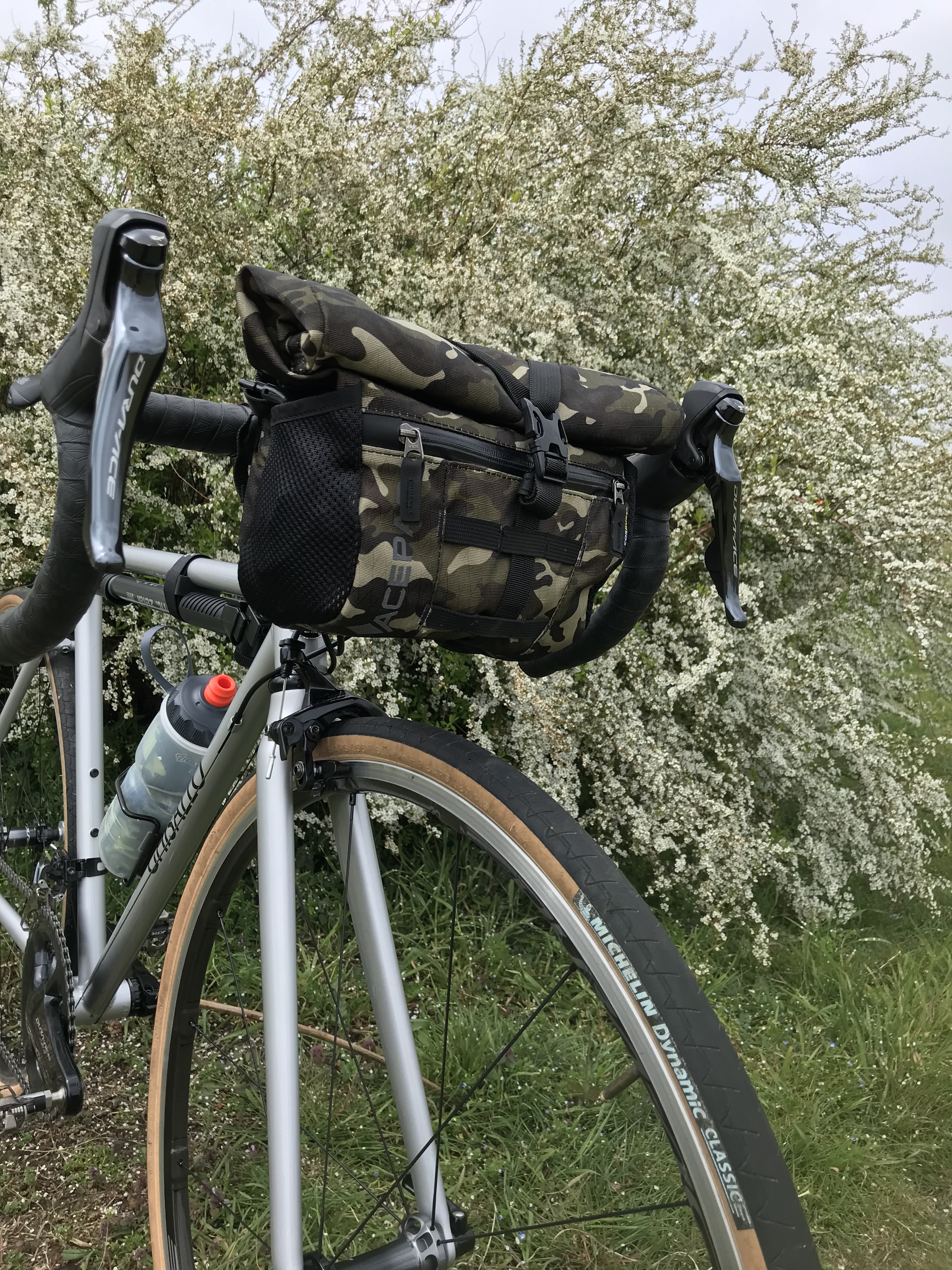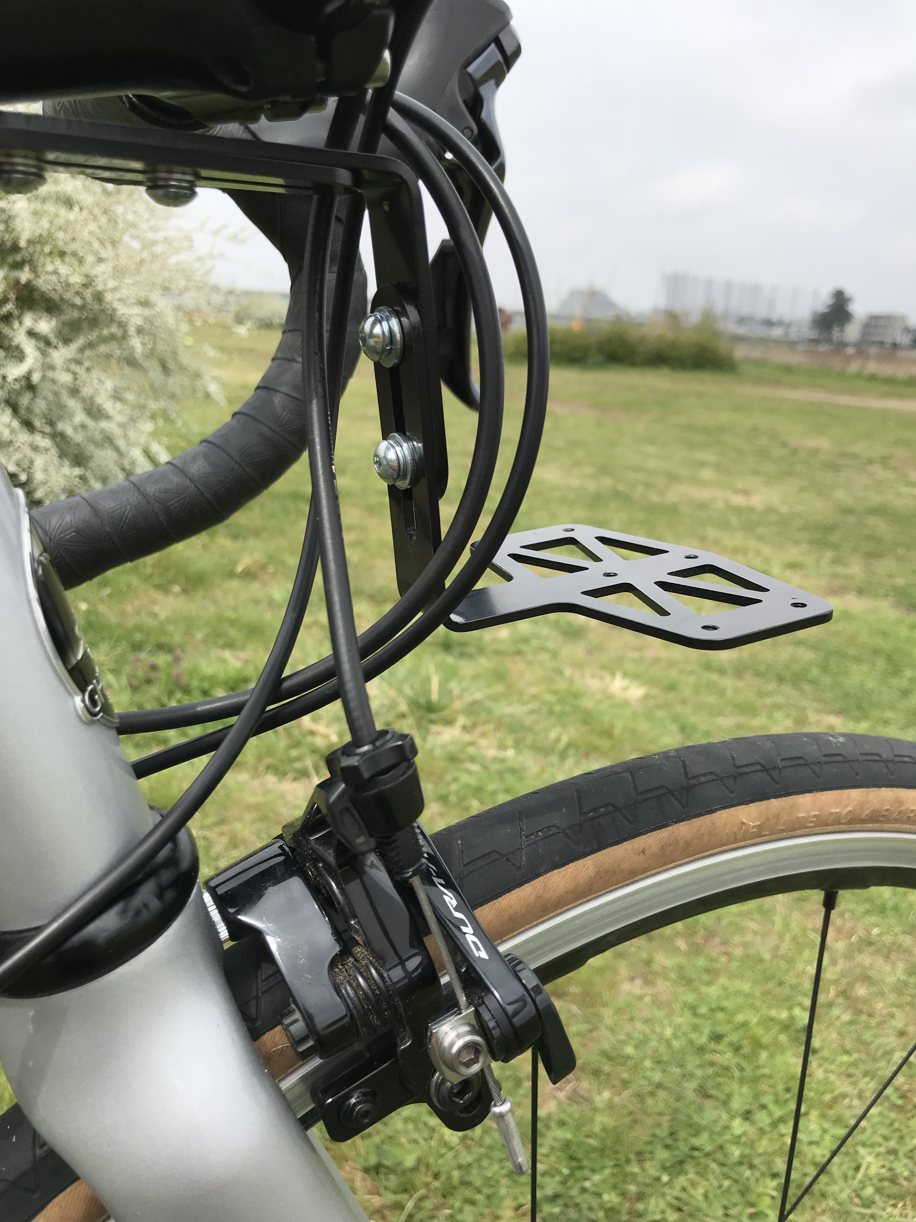ちなみに取り付ける「フロントバッグ」に関してはハンドルにベルクロなどを巻き付けて取り付ける簡易的なバッグを想定しております。