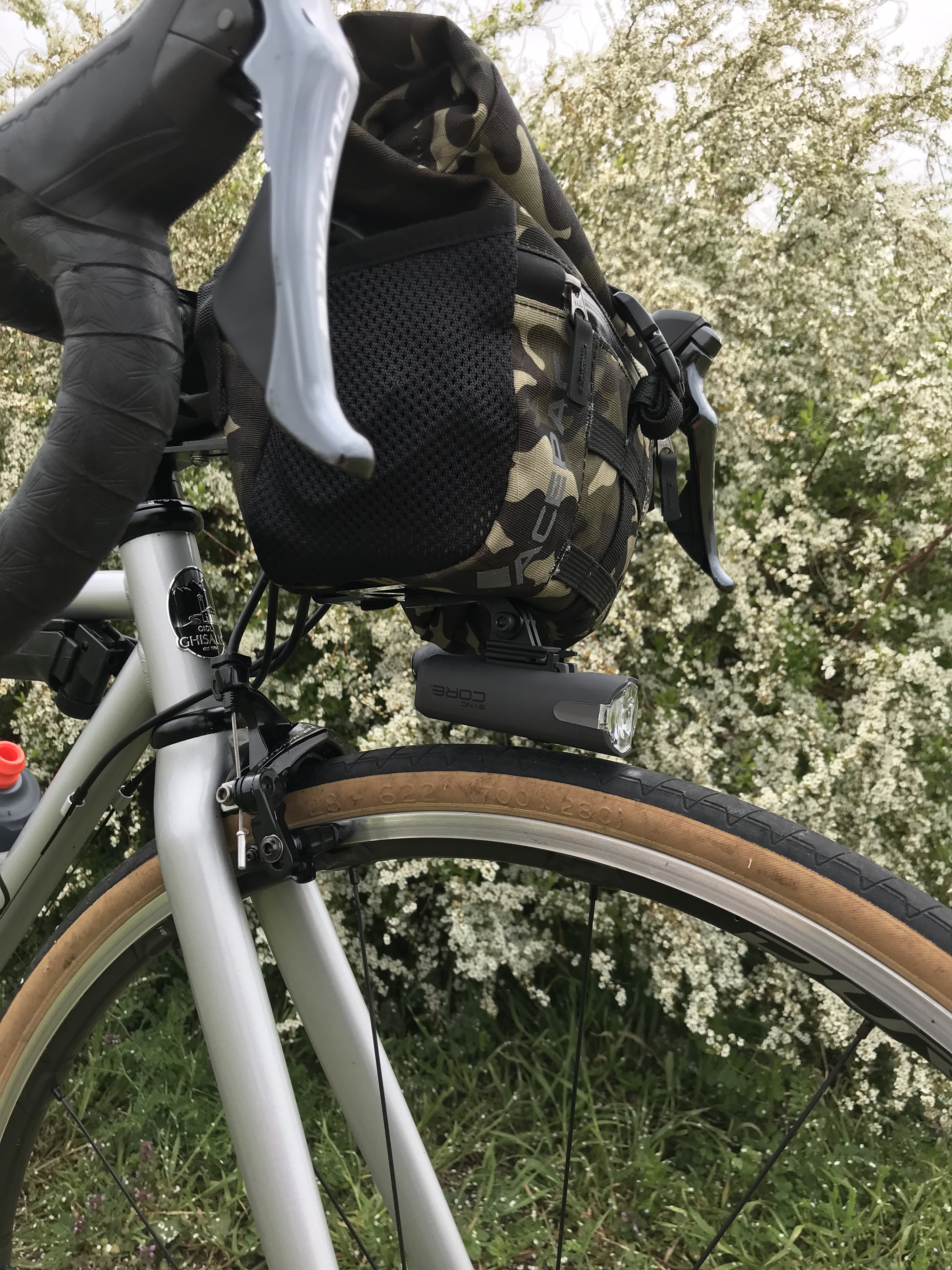 次にフロントバックを取り付けると必ずある「悩み」は「フロントライト」の取り付け位置ではないでしょうか?