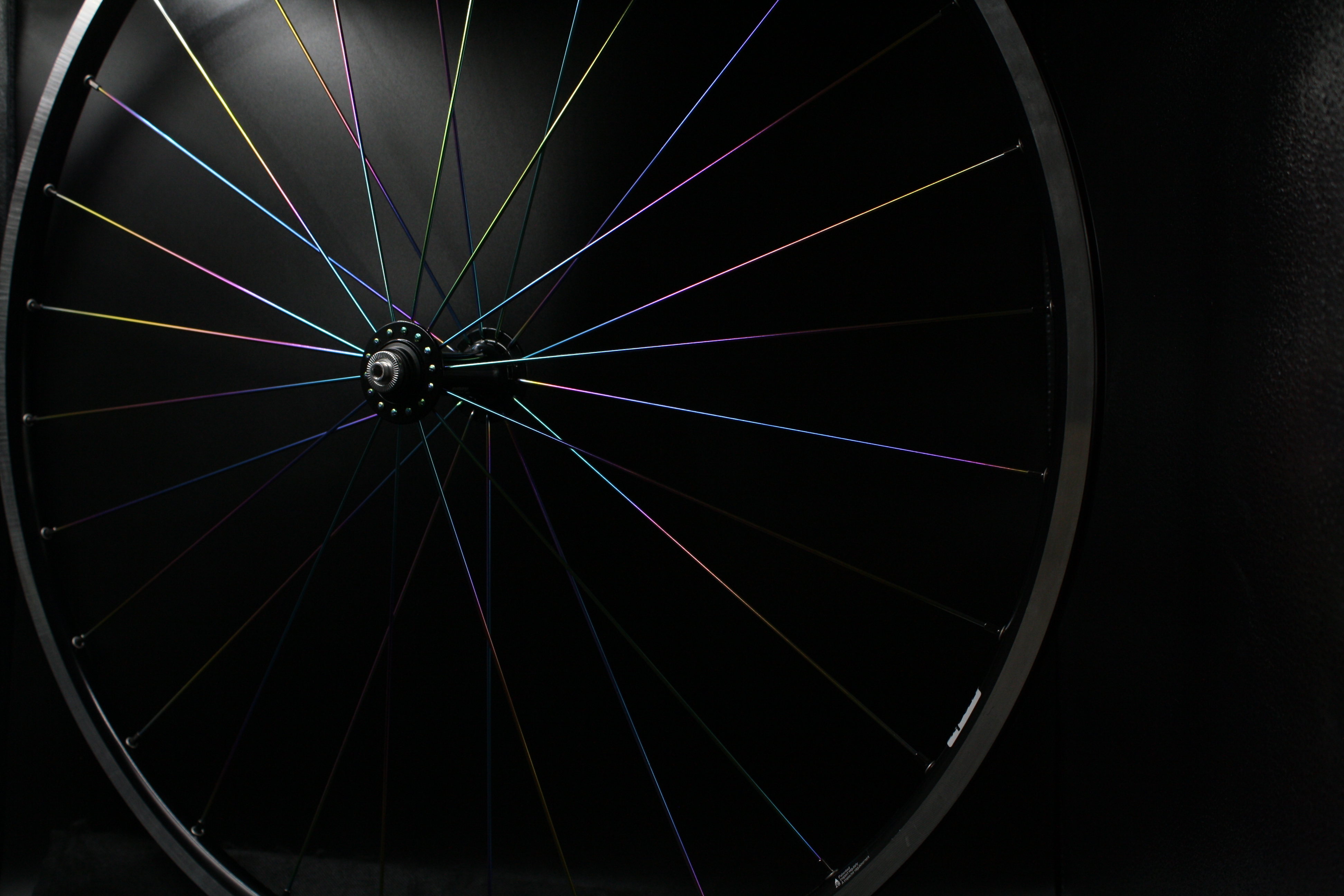 1本からの受注が可能なので、車体のアクセントカラーとしてお使い頂くのも粋かと思います。黒スポークの中にレインボースターがきらりと光るシーンを想像するだけで胸が躍ります!