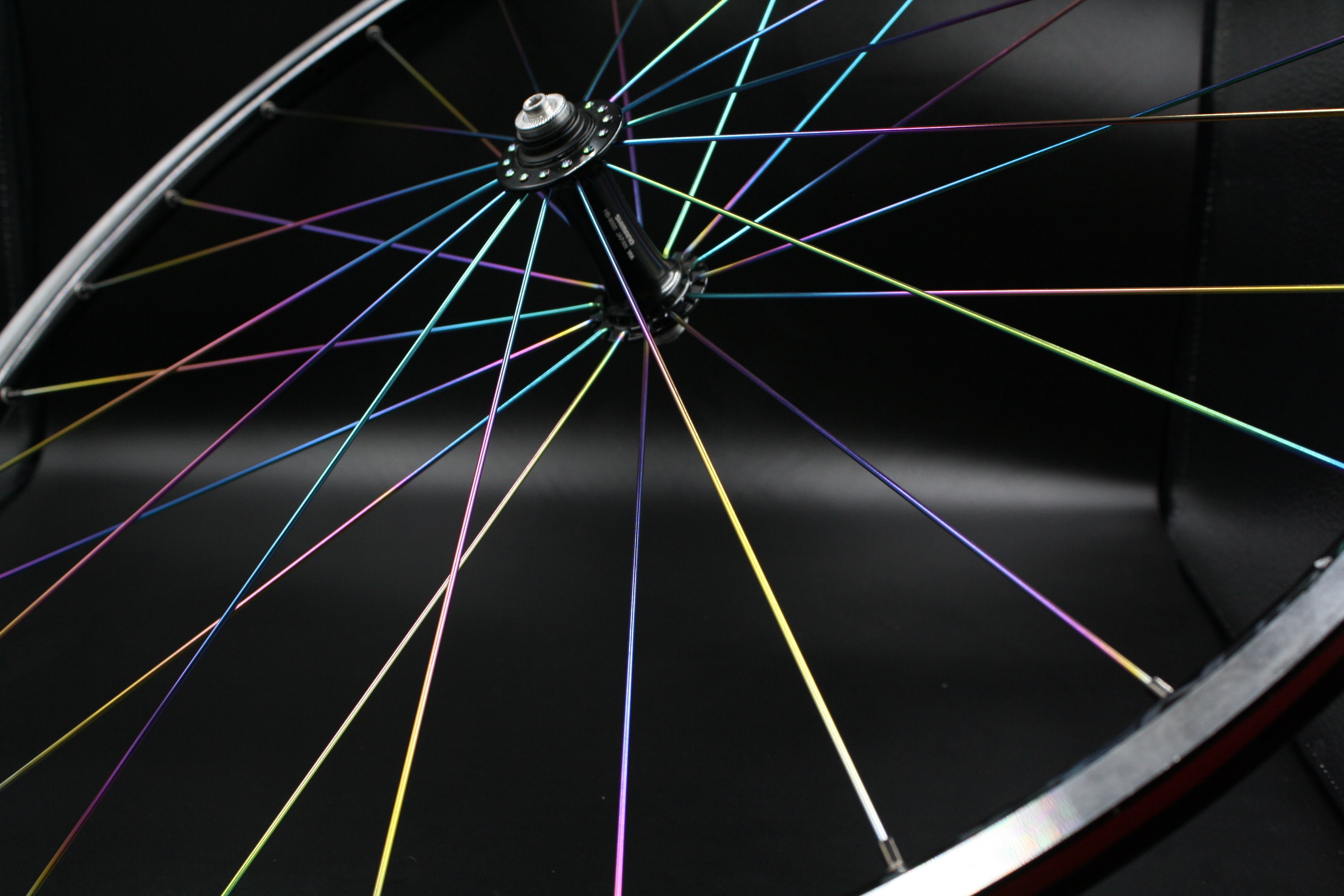 チタンのカラースポークとは比較にならない美麗さが売りとなっており、非常に高級感のある仕上がりとなっております。