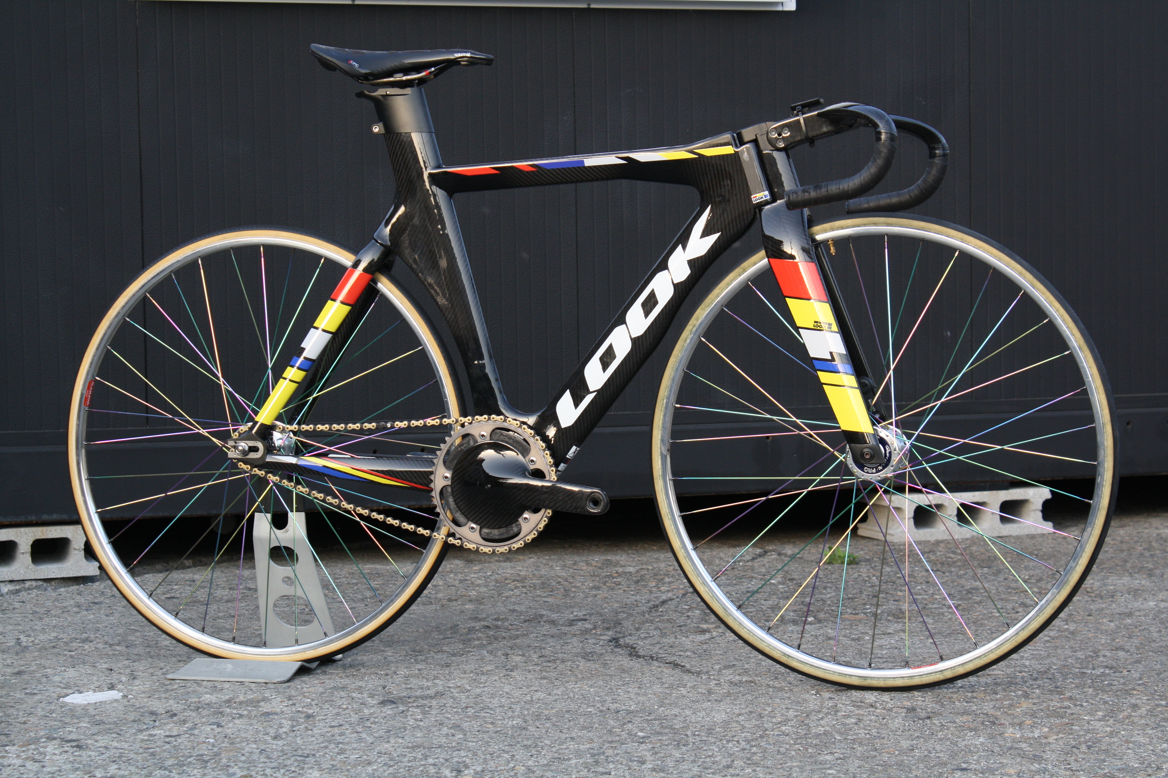 最後に、競輪の古性優作選手から中釜章成選手へと渡された、レインボースターで組んだホイールを装着した車体の写真を、ご本人の許可を頂きましたのでお届けします。