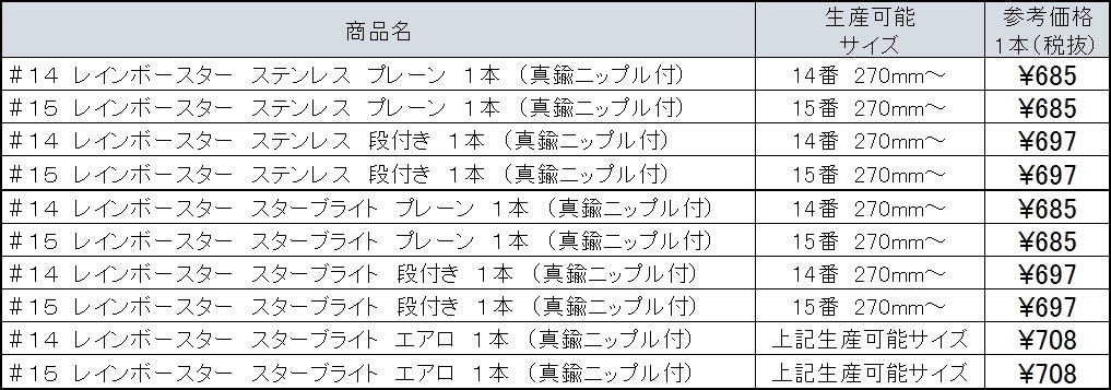日本で唯一、国内生産でスポークを製造している星工業様より、フカヤ限定販売としてレインボースポーク(以下レインボースター)を5月下旬までの期間限定販売として受注受付中です。