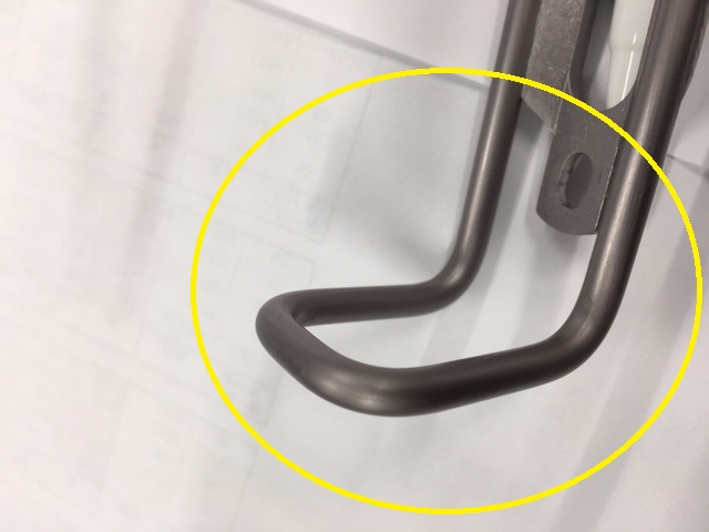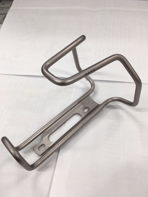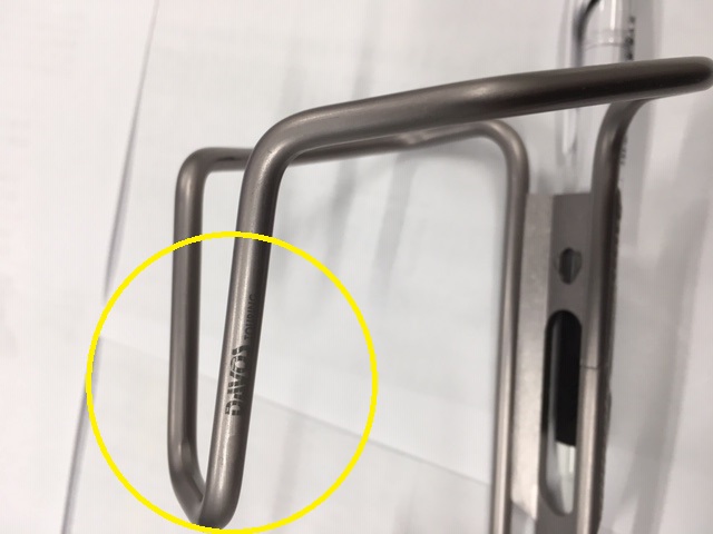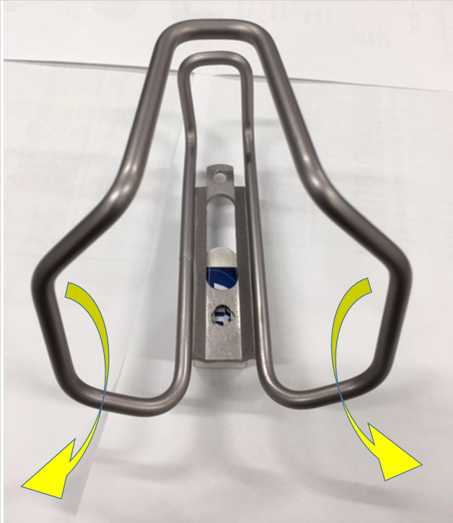 絶妙な角度に曲げられたこの2点の形状でボトルを保持し上下にずれるのを防ぎます、また一番力のかかる台座部分は通常のアルミボトルケージより剛性をあげています。