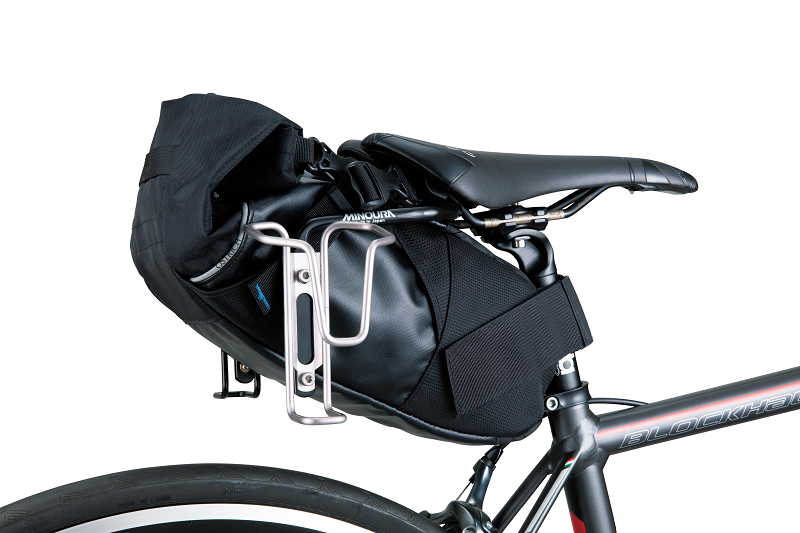 今期の新商品ミノウラ製SBS-250(サドルバックスタビライザー)に取付けてバックの揺れを抑制してボトル保持力も上がりグラベルツーリングでも大活躍。