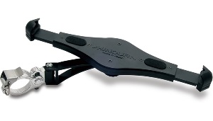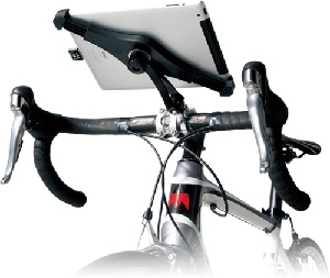 タブレットやスマートフォンを自転車のハンドルに取り付けるアタッチメントもあります。