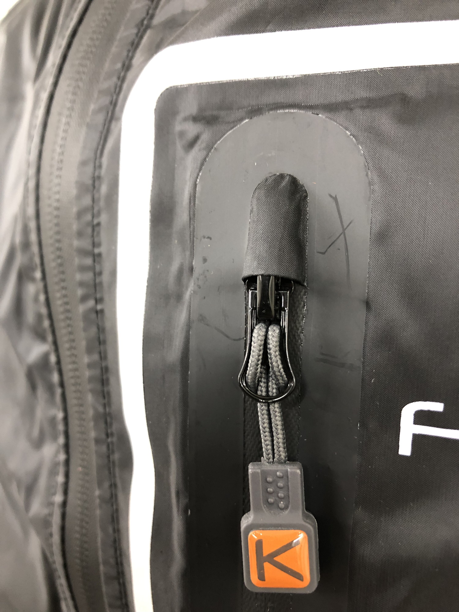 さらに、背面のポケットはダブルジッパーになっており適当に突っ込んでいっても手のひらサイズにまで圧縮できます。