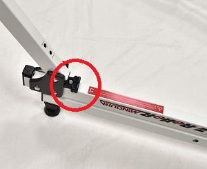 『右フレーム』にはロック解除レバーがついています(赤丸のところに)ついている方が「右側」のフレームです。