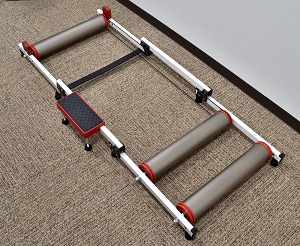 自転車のホイールベースがを測って適正な位置に前ローラーを装着します。