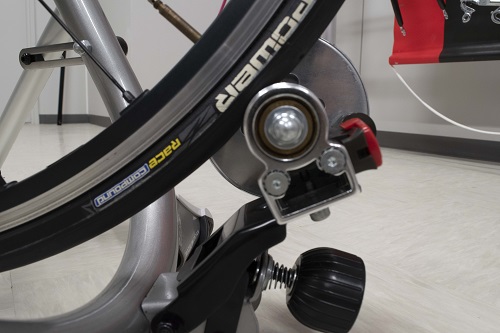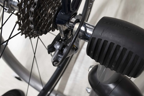 見た目もスマートでセッティングも簡単、付属している専用クイックレリーズに交換し自転車の後輪ハブ軸の部分にセットして負荷ユニットしたのボルトを回してタイヤにユニットを当てれば完了