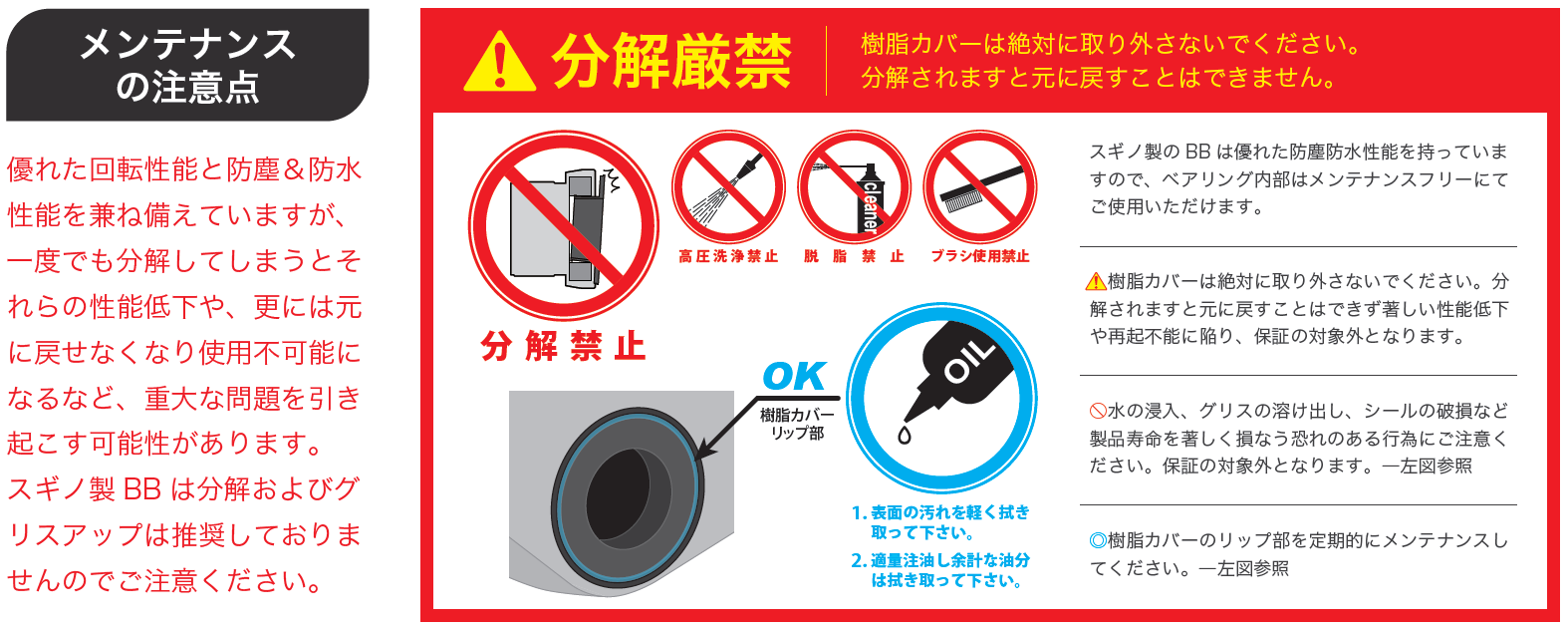 ベアリング内部はメンテナンスフリーで使用可能です。