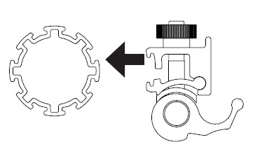 クイックタイプはレバーを倒してスリットに挟み込み、ノブボルトは文字通りボルトを締めて止めます。