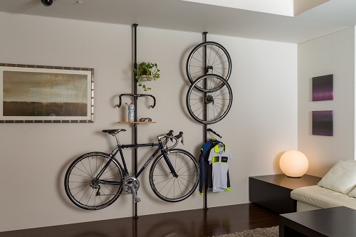 自転車のサドルを引っ掛けることができます、使用しない時は持ち上げて収納できます。